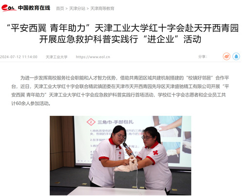 据悉,天津工业大学红十字会成立于2004年,自2007年开始与校医院一同为广大师生开展应急救护培训。截至目前,学校开设有通识选修课、应急救护夏令营、校红十字会救护培训班、师生救护培训班等多课程、多类型专题培训,并成功入选“第二批全国学校急救教育试点学校”。接下来,天津工业大学红十字会将持续开展好应急救护培训“五进”活动,普及应急救护知识,传播应急救护理念,努力营造“人人学急救,急救为人人”的良好氛围。