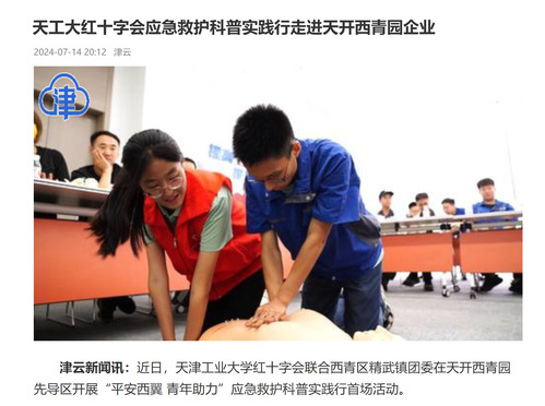 津云新闻讯:近日,天津工业大学红十字会联合西青区精武镇团委在天开西青园先导区开展“平安西翼 青年助力”应急救护科普实践行首场活动。