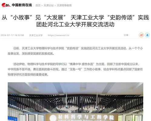 日前,天津工业大学物理科学与技术学院“史韵传颂”实践团赴河北工业大学开展交流活动,从一个个小故事出发,深刻感受国家的发展成就。