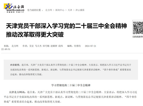 天津党员干部深入学习党的二十届三中全会精神 推动改革取得更大突破