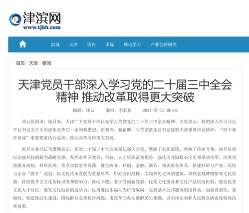 津滨网 丨天津党员干部深入学习党的二十届三中全会精神 推动改革取得更大突破