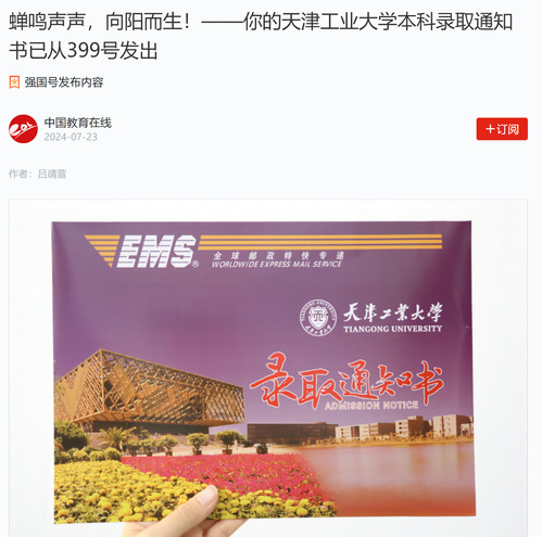 学习强国丨蝉鸣声声,向阳而生!——你的天津工业大学本科录取通知书已从399号发出