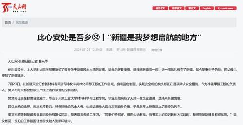 樊文彬应聘到新疆天业集团股份有限公司后,每天跟着老员工学习。“同事们特别好,很用心地教我。当书本上的知识转化为实践时,我感到既新鲜又有成就感。”樊文彬说,良好的工作氛围让他很快融入到新环境中。
