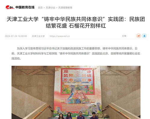 为深入学习宣传贯彻习近平总书记关于加强和改进民族工作的重要思想,铸牢中华民族共同体意识,日前,天津工业大学材料科学与工程学院“铸牢中华民族共同体意识”实践团赴北京、昆明等地开展暑期社会实践活动。