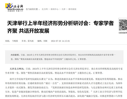 天津举行上半年经济形势分析研讨会:专家学者齐聚 共话开放发展