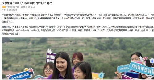 直播间里,天津工业大学电子与信息工程学院的“见微知著”暑期社会实践团的成员们说起了“津味儿”相声。原来,大学生们正在甘肃省陇南市西和县丰收村的山坡上实景直播带货,她们一唱一和、一捧一逗,热情洋溢地为网友们介绍花椒、土豆粉、蜂蜜、醪糟等“甘味儿”特产,实践团成员们各司其职,主播、助播、技术等,大家带起货来专业有序。