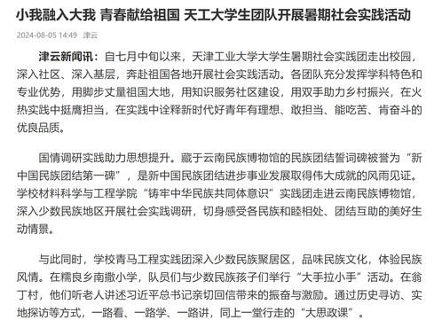 小我融入大我 青春献给祖国 天工大学生团队开展暑期社会实践活动