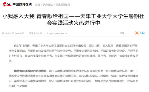 中国教育在线丨小我融入大我 青春献给祖国——天津工业大学大学生暑期社会实践活动火热进行中