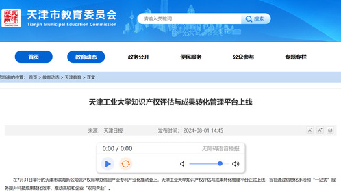 在7月31日举行的天津市滨海新区知识产权局举办信创产业专利产业化推动会上,天津工业大学知识产权评估与成果转化管理平台正式上线,旨在通过信息化手段和“一站式”服务提升科技成果转化效率,推动高校和企业“双向奔赴”。
