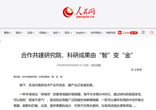 “膜材料—膜设备—膜应用”,全产业链发展让沧州成为京津膜技术转移首选地。