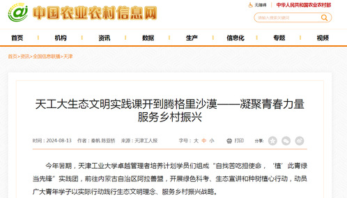 天工大生态文明实践课开到腾格里沙漠——凝聚青春力量 服务乡村振兴