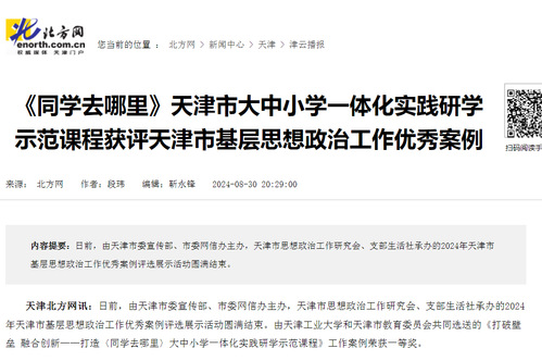 《同学去哪里》天津市大中小学一体化实践研学示范课程获评天津市基层思想政治工作优秀案例
