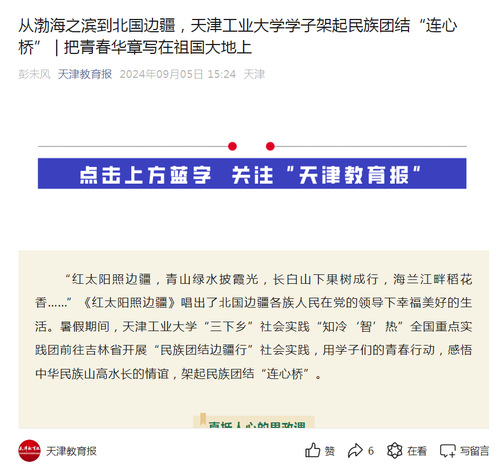 从渤海之滨到北国边疆,天津工业大学学子架起民族团结“连心桥” | 把青春华章写在祖国大地上