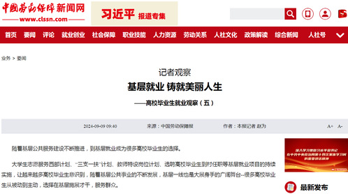 中国劳动保障新闻网丨基层就业 铸就美丽人生——高校毕业生就业观察(五)