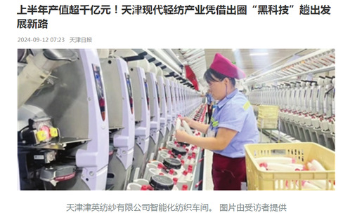 上半年产值超千亿元!天津现代轻纺产业凭借出圈“黑科技”趟出发展新路