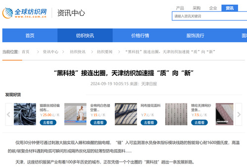 全球纺织网丨“黑科技”接连出圈,天津纺织加速提“质”向“新”