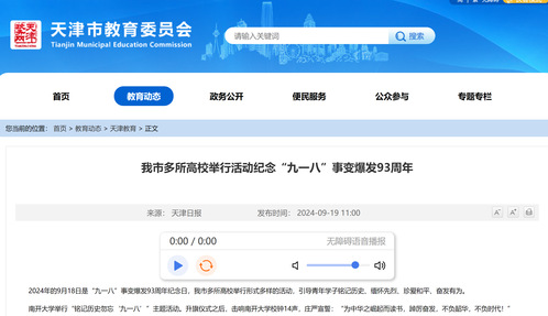 2024年的9月18日是“九一八”事变爆发93周年纪念日,我市多所高校举行形式多样的活动,引导青年学子铭记历史、缅怀先烈、珍爱和平、奋发有为。