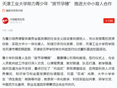 天津工业大学助力青少年“拔节孕穗” 推进大中小育人合作