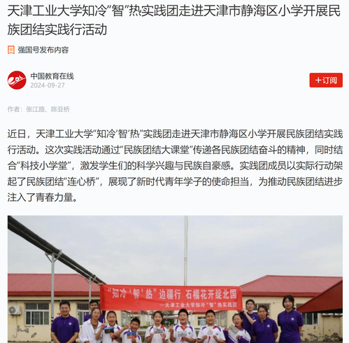 天津工业大学知冷“智”热实践团走进天津市静海区小学开展民族团结实践行活动