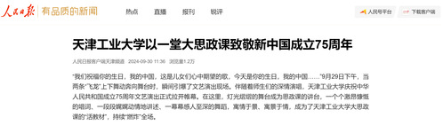 “我们祝福你的生日,我的中国,这是儿女们心中期望的歌,今天是你的生日,我的中国……”9月29日下午,当两条“飞龙”上下舞动奔向舞台时,瞬间引爆了文艺演出现场。伴随着师生们的深情演唱,天津工业大学庆祝中华人民共和国成立75周年文艺演出正式拉开帷幕。在这里,灯光熠熠的舞台成为思政课的讲台,一个个激昂慷慨的唱词、一段段娓娓动情地讲述、一幕幕感人至深的舞蹈,寓情于景、寓景于情,成为了天津工业大学大思政课的“活教材”,持续“燃炸”全场。