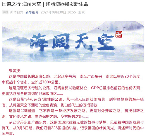 从辽宁丹东到广西东兴,这条国道承载着无数的故事与梦想,见证着中国的发展与腾飞。从9月3日起,我们沿着228国道的轨迹,记录祖国的壮美风光,讲述新时代的中国故事。
