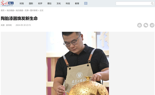 “85后”的天津工业大学副教授郑勇是一位从事漆陶艺术的青年匠人。他带领师生团队在校成立工作室,以复原中国传统“陶胎漆器”技艺为主要工作。
