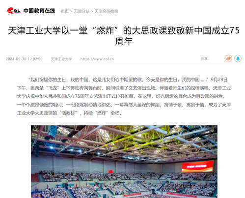 中国教育在线丨天津工业大学以一堂“燃炸”的大思政课致敬新中国成立75周年