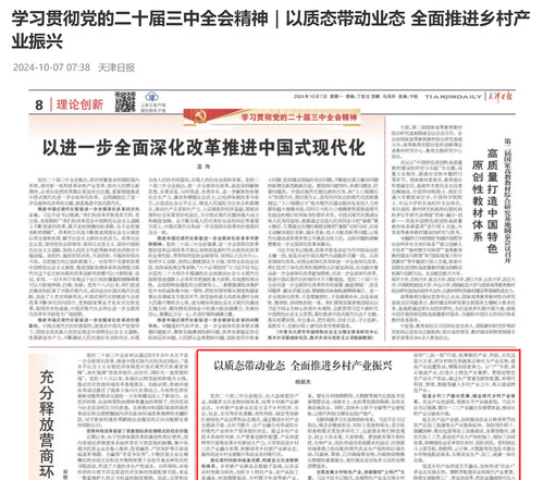 学习贯彻党的二十届三中全会精神|以质态带动业态 全面推进乡村产业振兴