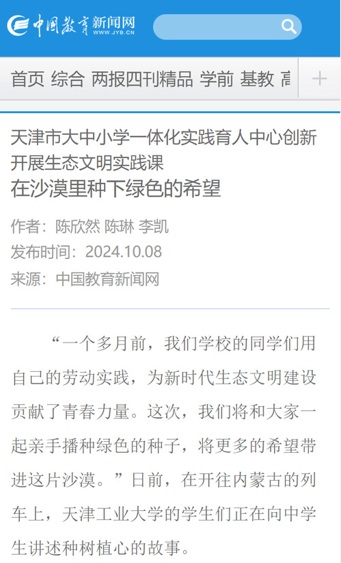 天津市大中小学一体化实践育人中心创新开展生态文明实践课在沙漠里种下绿色的希望