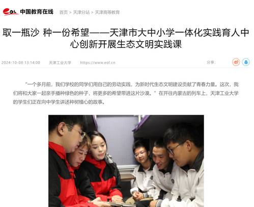 中国教育在线丨取一瓶沙 种一份希望——天津市大中小学一体化实践育人中心创新开展生态文明实践课