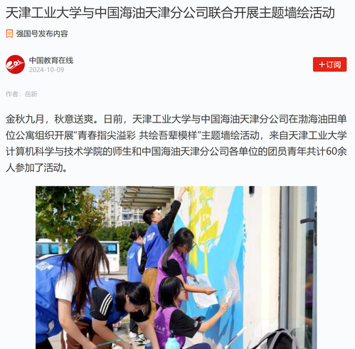 学习强国丨天津工业大学与中国海油天津分公司联合开展主题墙绘活动