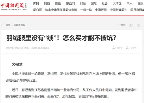 按需选购羽绒服不仅可以节省不必要的开支,也可以避免过热或不够保温而引起不适。但如果买到不合格或假冒伪劣的羽绒服,我们该怎么维权?