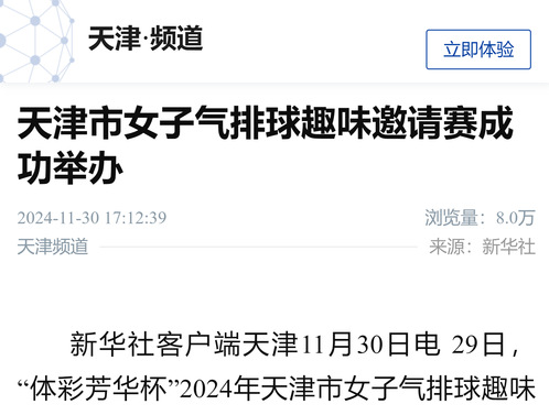 新华社客户端天津11月30日电 29日,“体彩芳华杯”2024年天津市女子气排球趣味邀请赛在天津市第二工人文化宫成功举办。