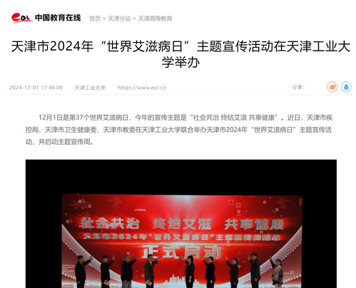 中国教育在线丨天津市2024年“世界艾滋病日”主题宣传活动在天津工业大学举办
