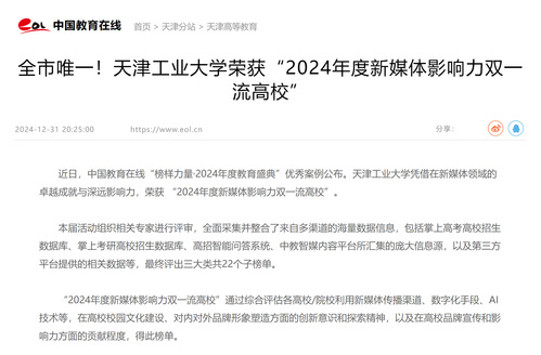 全市唯一!天津工业大学荣获“2024年度新媒体影响力双一流高校”