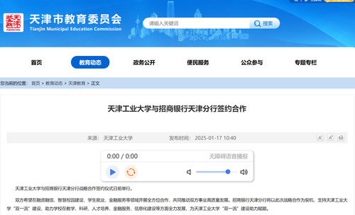 天津工业大学与招商银行天津分行战略合作签约仪式日前举行。