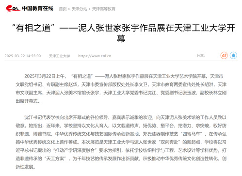 中国教育在线丨“有相之道”——泥人张世家张宇作品展在天津工业大学开幕