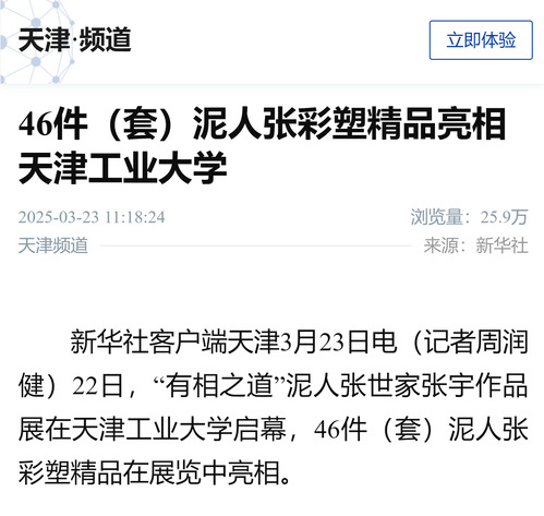 本次展览由天津工业大学与天津泥人张美术馆共同主办,将展至10月31日。期间,张宇将受邀在天津工业大学举办讲座,分享泥人张的艺术传承与创新经验,与师生们进行面对面的交流互动,让大家近距离感受泥人张艺术的魅力与精髓。(完)