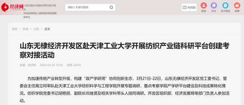 山东无棣经济开发区赴天津工业大学开展纺织产业链科研平台创建考察对接活动