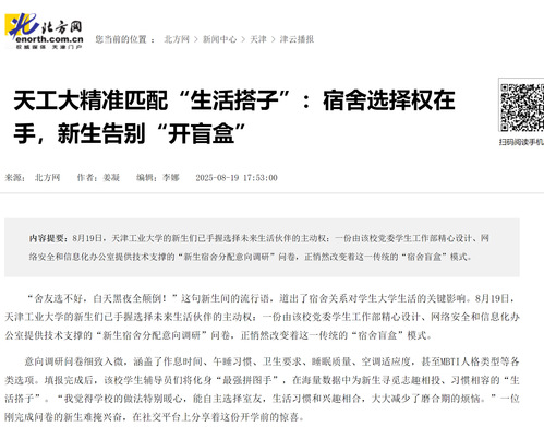 北方网丨天工大精准匹配“生活搭子”:宿舍选择权在手,新生告别“开盲盒”