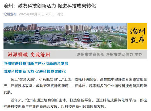 近年来,沧州市通过培育创新主体、打造创新平台、促进科技成果转化等举措,积极推进科技创新与产业创新融合发展,以科技创新引领高质量发展。
