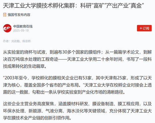 未来,依托先进分离膜材料全国重点实验室的科研支撑,天津工业大学将继续深化与政府、产业的合作,推动更多膜技术成果转化落地。这支从高校走出的创新力量,正在用实实在在的创新成果,书写着科技成果转化的“天工答卷”。