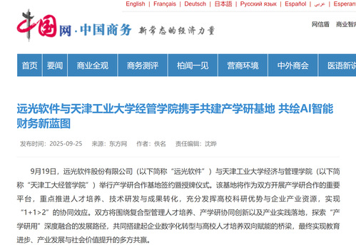 9月19日,远光软件股份有限公司(以下简称“远光软件”)与天津工业大学经济与管理学院(以下简称“天津工大经管学院”)举行产学研合作基地签约暨授牌仪式。该基地将作为双方开展产学研合作的重要平台,重点推进人才培养、技术研发与成果转化,充分发挥高校科研优势与企业产业资源,实现“1+1>2”的协同效应。双方将围绕复合型管理人才培养、产学研协同创新以及产业实践落地,探索“产学研用”深度融合的发展路径,共同搭建起企业数字化转型与高校人才培养双向赋能的桥梁,最终实现教育进步、产业发展与社会价值提升的多方共赢。