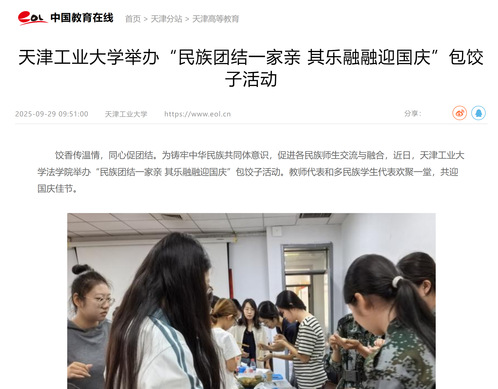 天津工业大学举办“民族团结一家亲 其乐融融迎国庆”包饺子活动