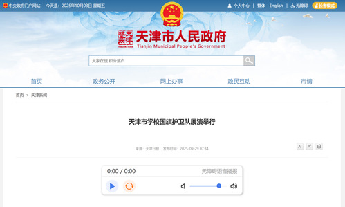 天津工业大学2025级本科生展示的刺杀操、天津财经大学珠江学院学生带来的综合战术及旗语展示、南开区东方小学学生展示的军体拳等特色军事项目,彰显出我市学生的蓬勃朝气与活力,赢得现场观众的阵阵掌声,是一堂富有成效的爱国主义教育实践课。展演在全场师生齐声高唱《歌唱祖国》的激昂旋律中落幕。