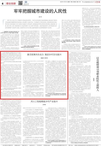 乡村振兴既要塑形也要铸魂,推进乡村文化振兴是全面推进乡村振兴战略的重要目标任务。传承发展中华优秀传统文化,通过创造性转化和创新性发展不断激发传统文化的内在活力,调动广大农民干事创业的积极性、主动性、创造性,推动文化事业全面繁荣和文化产业快速发展,可为深入推进乡村文化振兴提供强大动力源泉,助力乡村全面振兴。