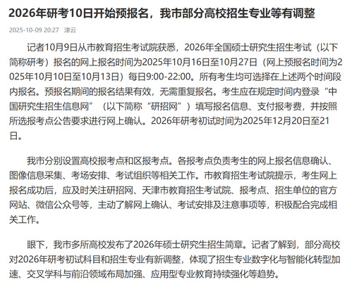 2026年研考10日开始预报名,我市部分高校招生专业等有调整
