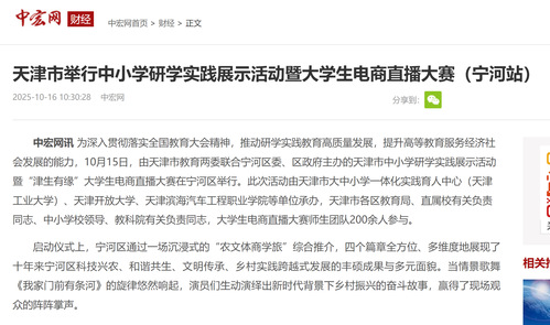 天津市举行中小学研学实践展示活动暨大学生电商直播大赛(宁河站)