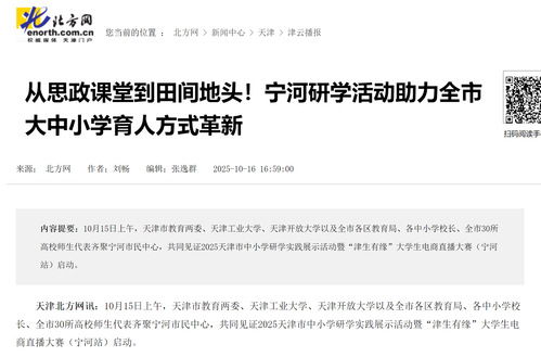 从“行走的思政课”到“直播助农的新实践”,这场校地协同育人的盛会,更是教育深化育人方式改革、服务区域发展深度融合的生动写照。这场秋日里的研学盛会,不仅为宁河注入了教育发展新活力,更让实践育人的光芒,照亮了更多学子的成长之路。
