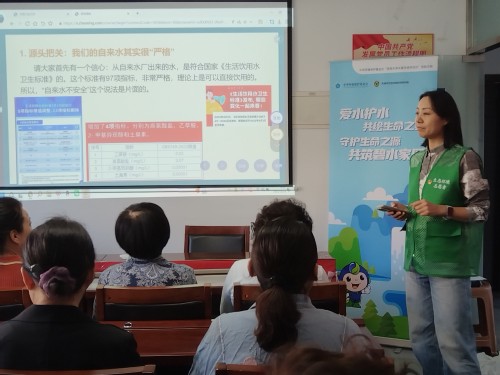 系主任张环老师给社区居民系统解读了自来水质量标准、水的选择等知识,并讲解了水安全与科学饮用领域的常识及常见误区。她指出,我国生活饮用水卫生标准不断升级,2022年标准有97项指标,新增4项高检出率指标,饮用水安全保障不断提升。面对居民普遍关心的自来水是否符合卫生标准,能否达到饮用标准,水壶为何有水垢等热点问题,张老师逐一进行了科普。